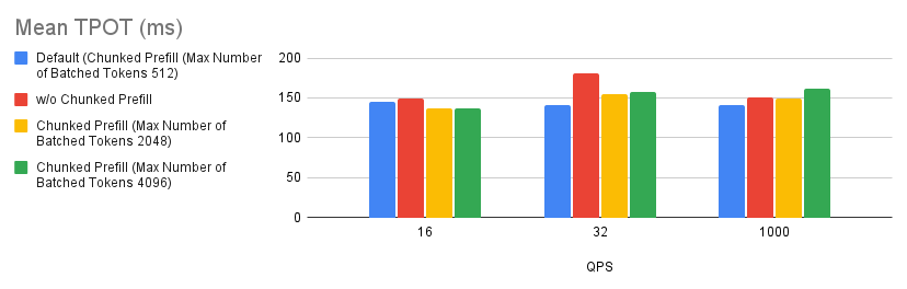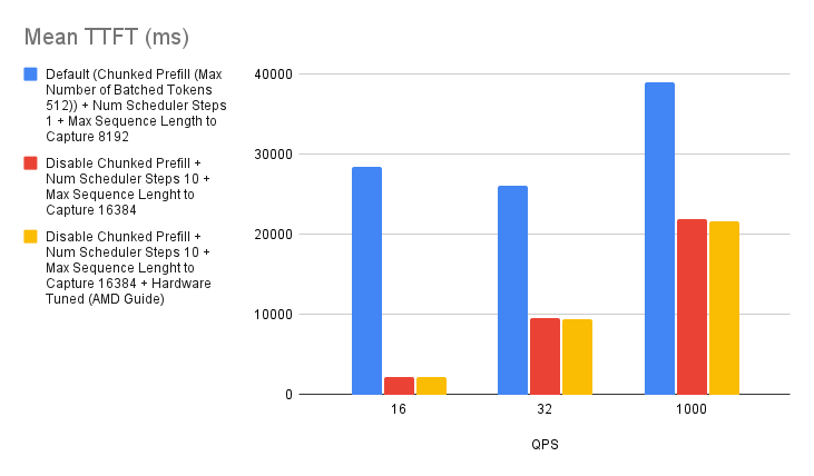 Based on the experiment we ran, we found that there’s a slight improvement with tuning the chunked prefill values over disabling the chunked prefill feature. However, if you’re not sure whether to enable chunked prefill or not, simply start off by disabling it and you should generally expect better performance than with using the default settings. This is specific to MI300X GPUs.